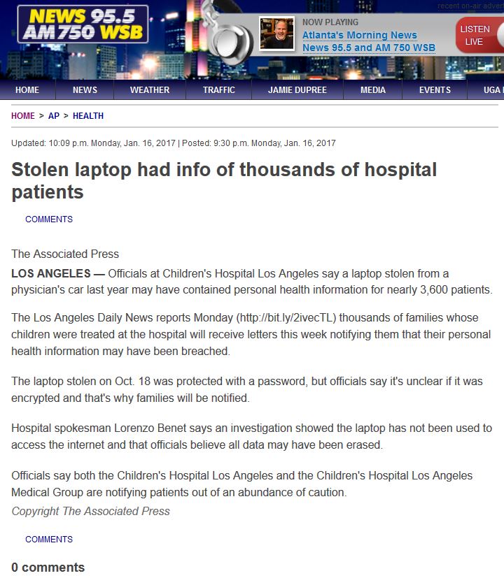 Back in 2007 I wrote a blog post on what’s it going to take to encrypt laptop hard drives. After seeing this recent story about Children’s Hospital Los Angeles, I can’t help but shake my head.