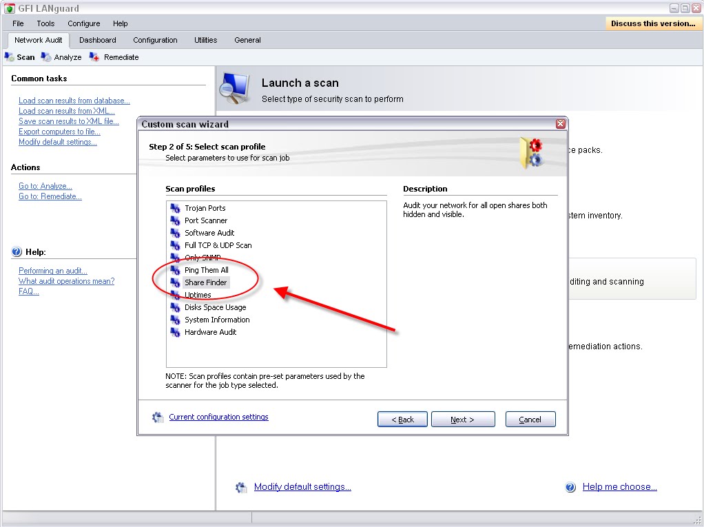 Do yourself a favor and download the trial version of LANguard and run the share finder tool in your environment to see just what’s being shared out – and exposed. It’s as simple as the following: