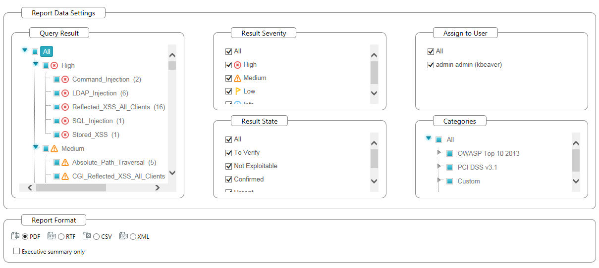 One thing that’s glaringly evident in version 8 is the streamlined installation process. Minimal options. No tricky questions. No random services installed to junk up your system (at least that I know of). It just installs and is ready to use in less than 5 minutes. I installed CxSAST on a much less powerful virtual machine than I had version 7 running on and it actually seems to be much faster. I’m not sure if this was by design or if it’s just something in my head but it’s a nice new feature. Additional features in version 8 (currently 8.0.1) that I think are beneficial include: